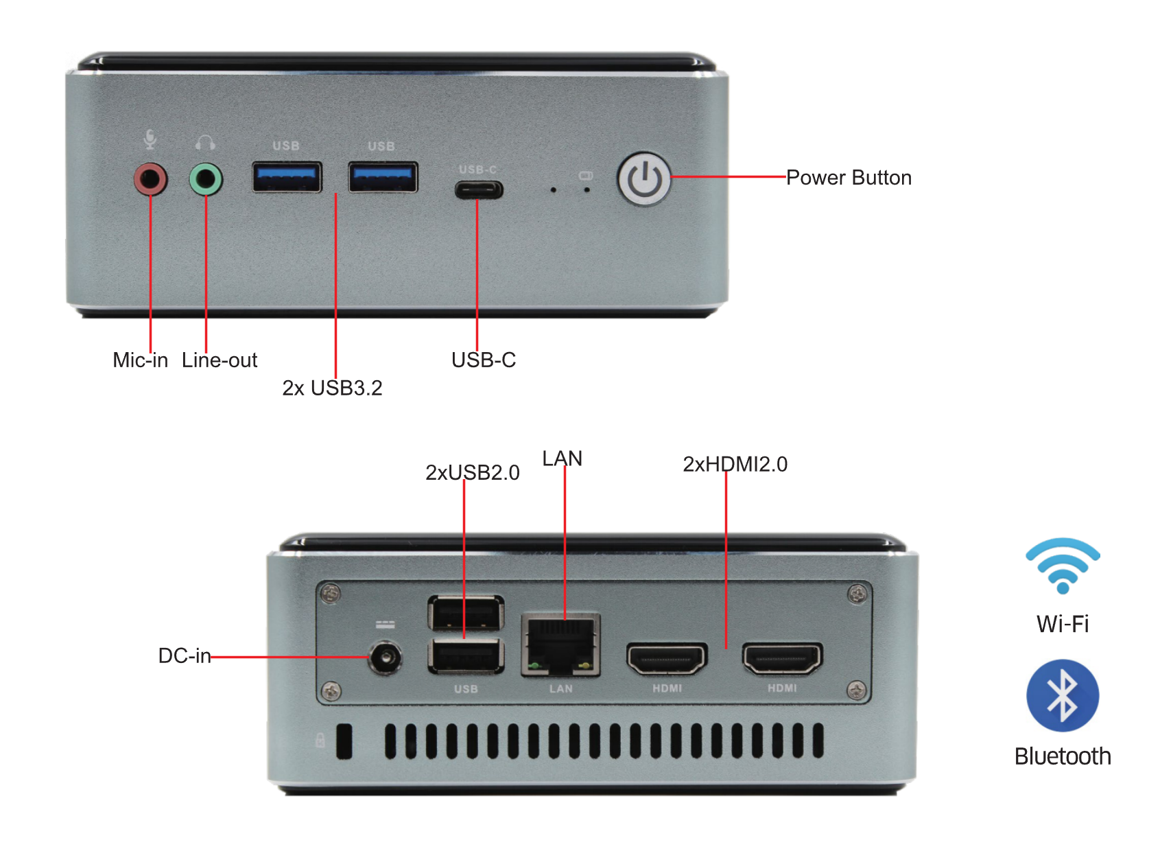 I/O Ports: 2xUSB3.2, 2xUSB2.0, 1xLAN, USB-C Gen2, Line-out, Mic-in,